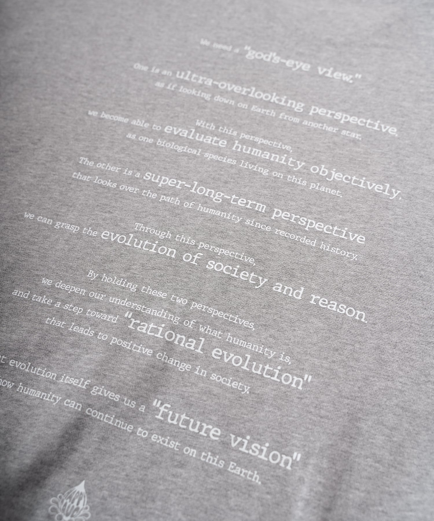 ・バックには「GOD’S EYE VIEW」のメッセージをプリント。