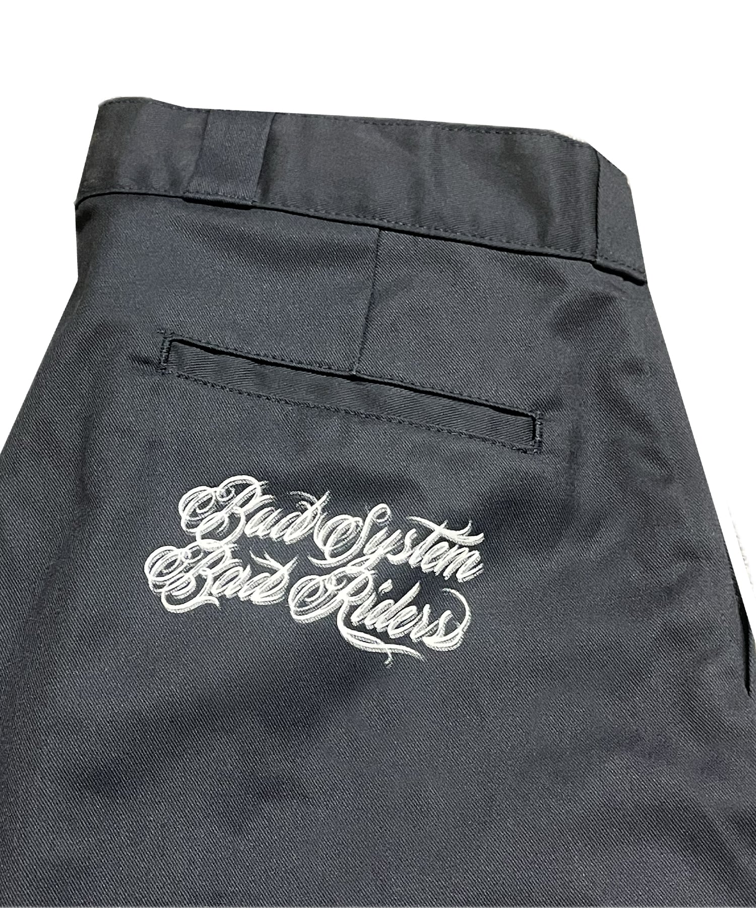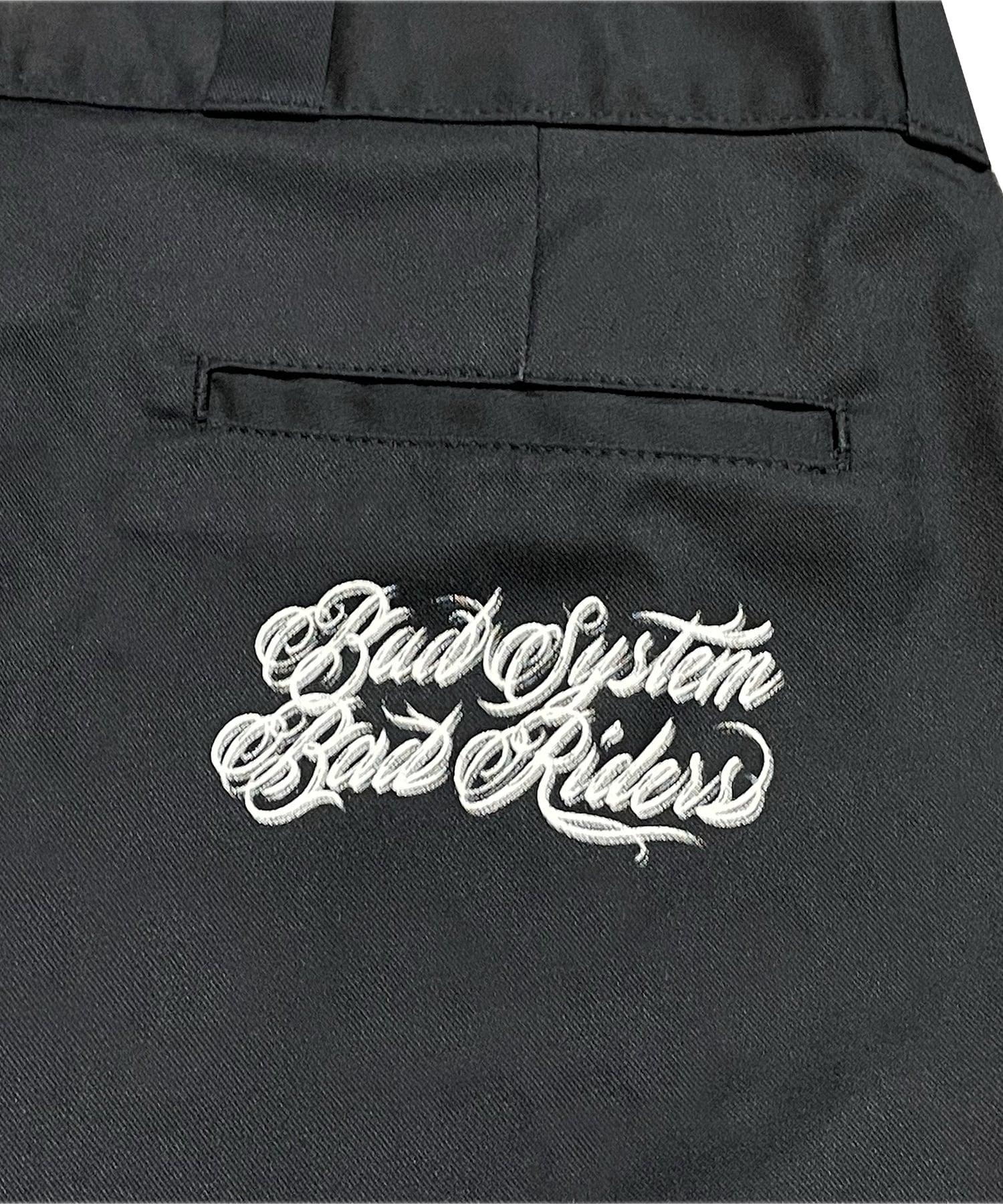 バックポケットに「“ Bad System, Bad Riders “」をプリント。