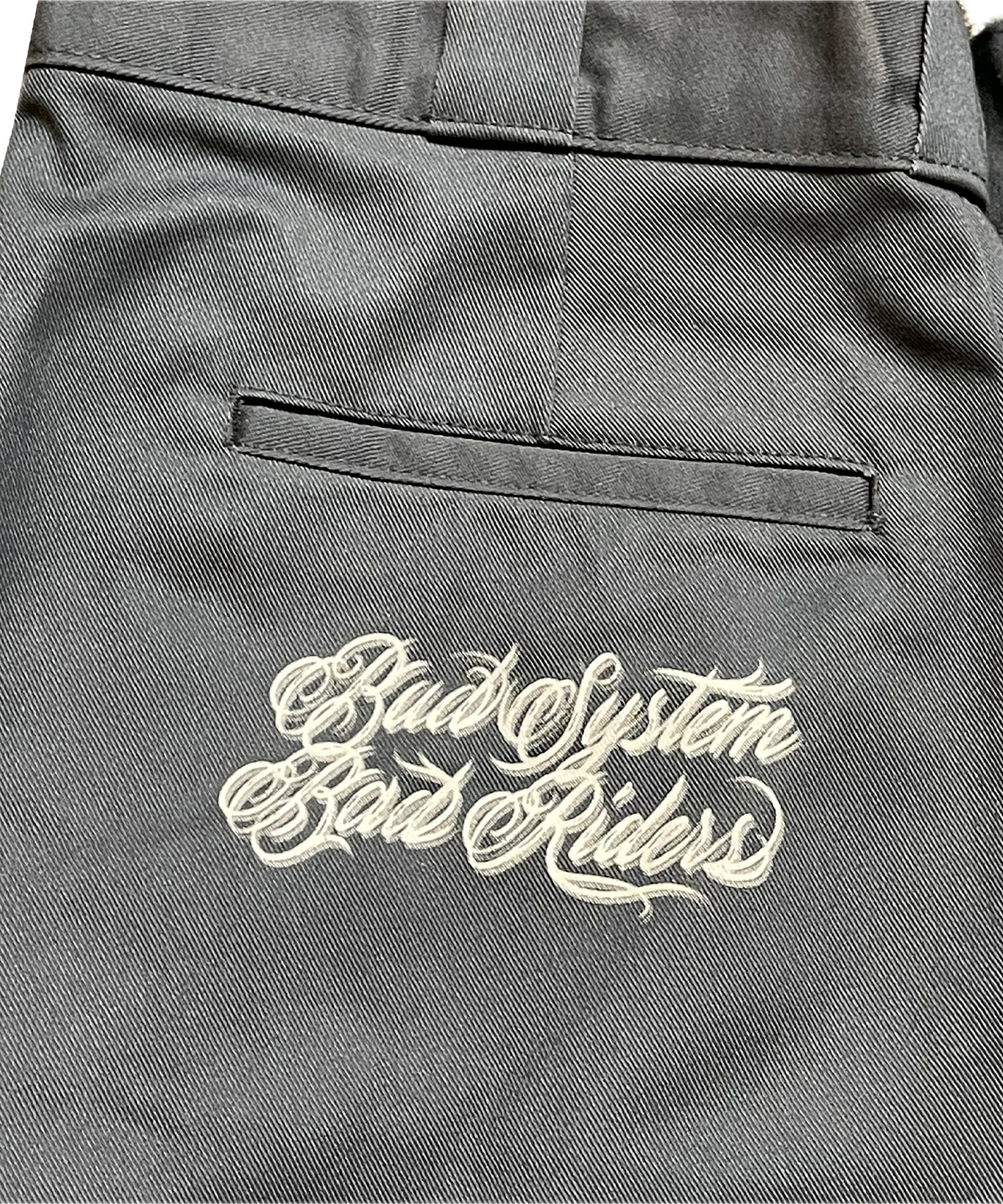 バックポケットに「“ Bad System, Bad Riders “」をプリント。
