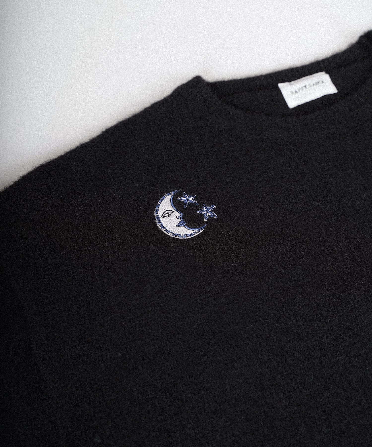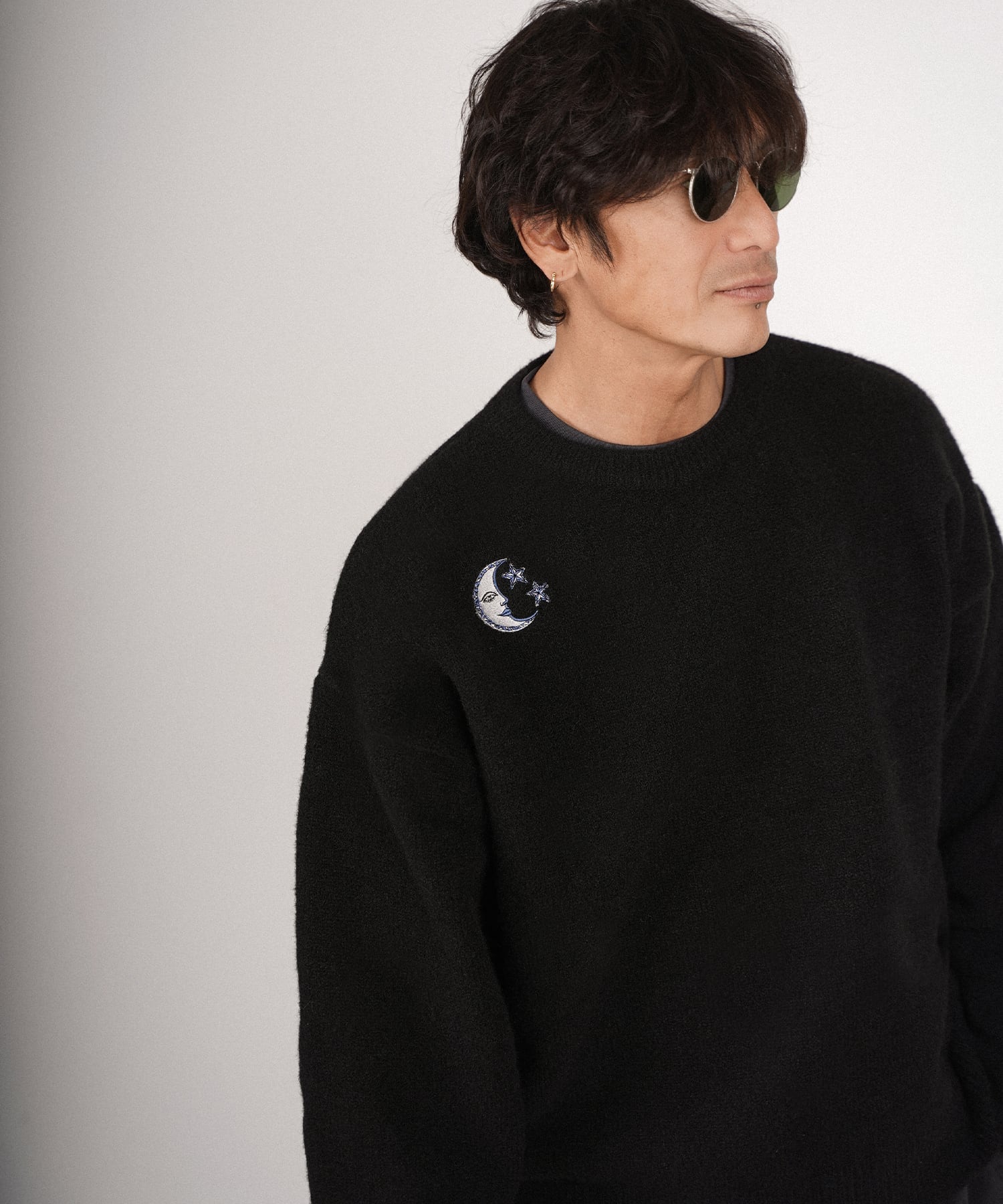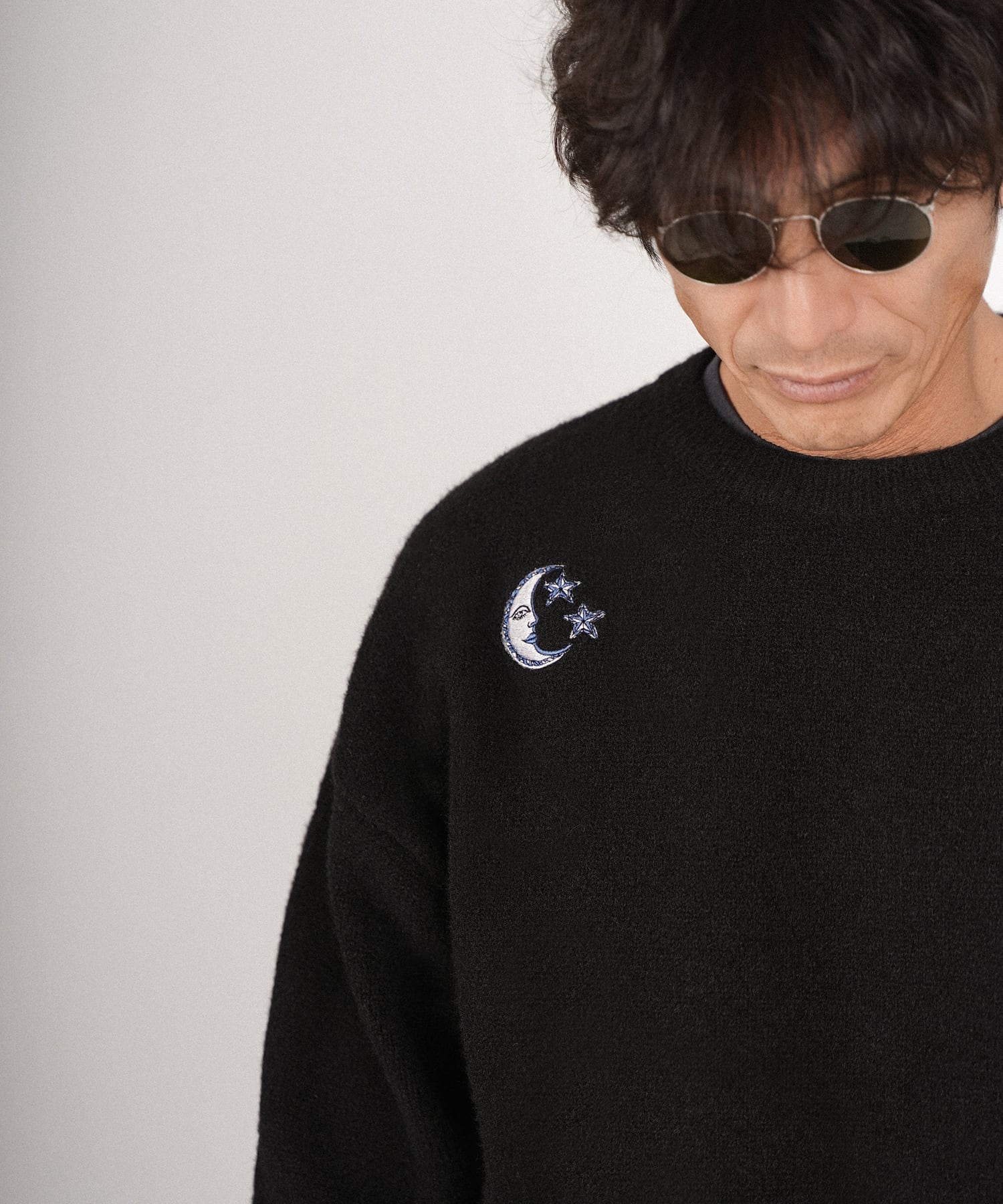 ・フロント部分には太陽、月と星をそれぞれモチーフにした刺繍を施したクルーニット。