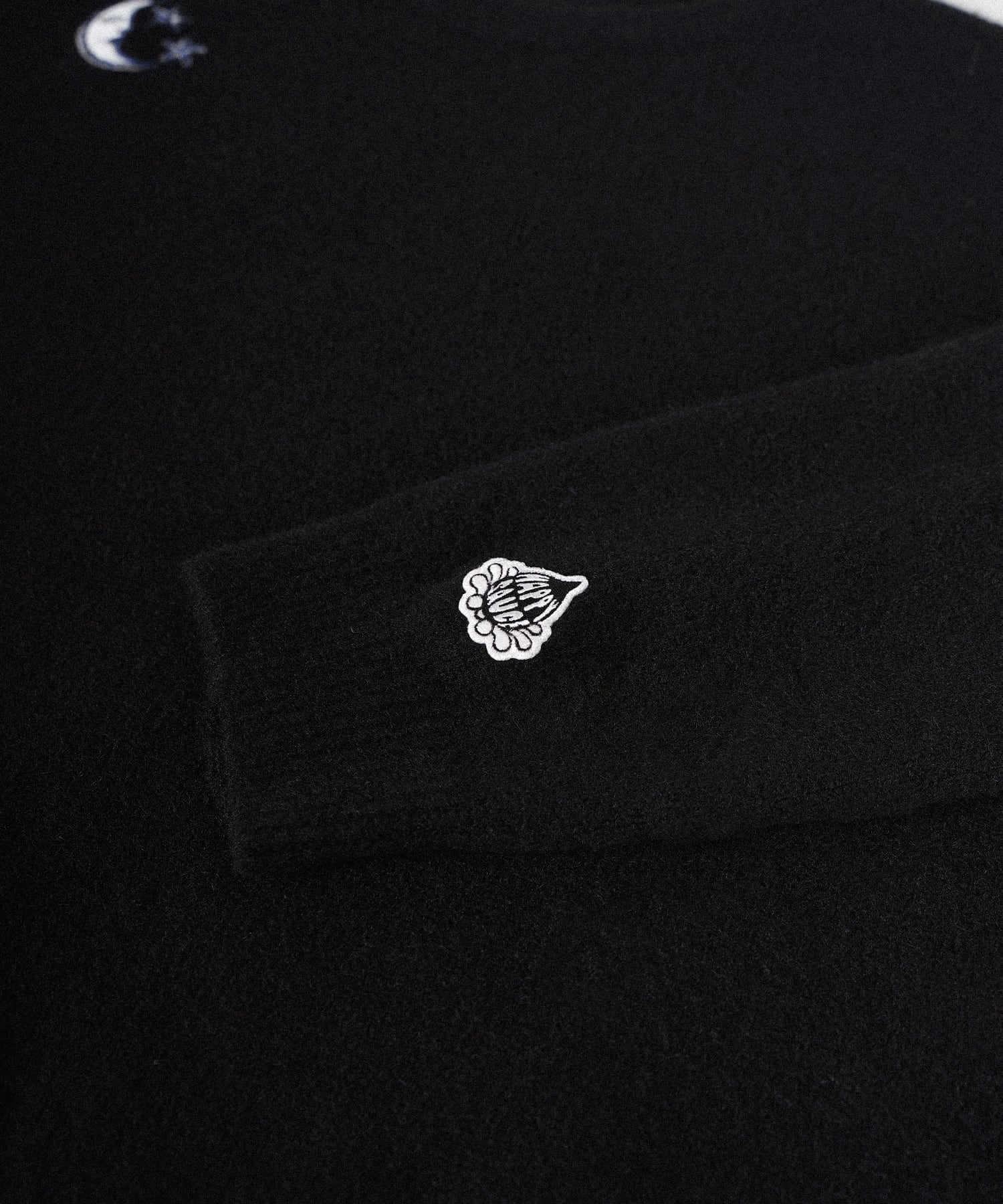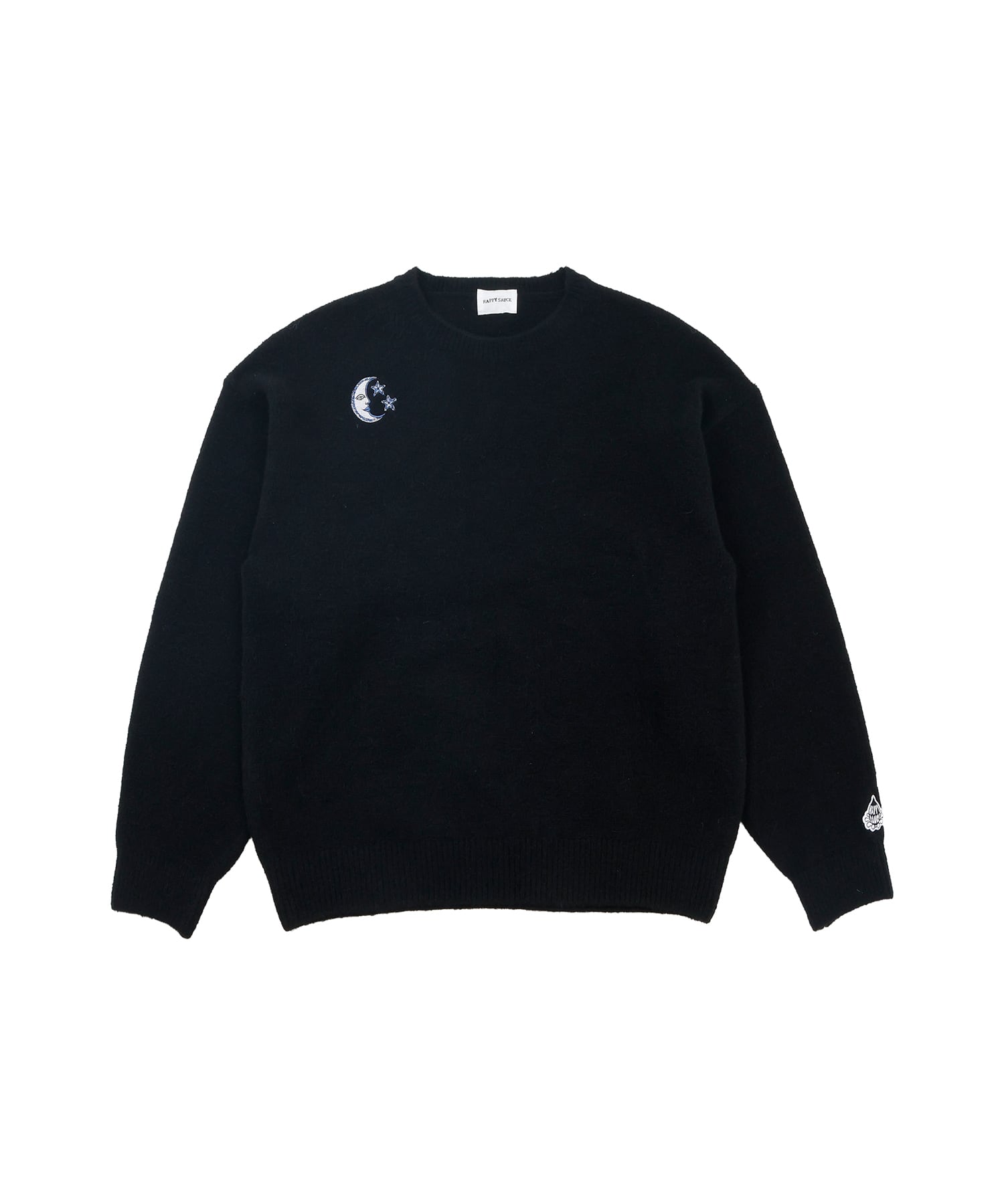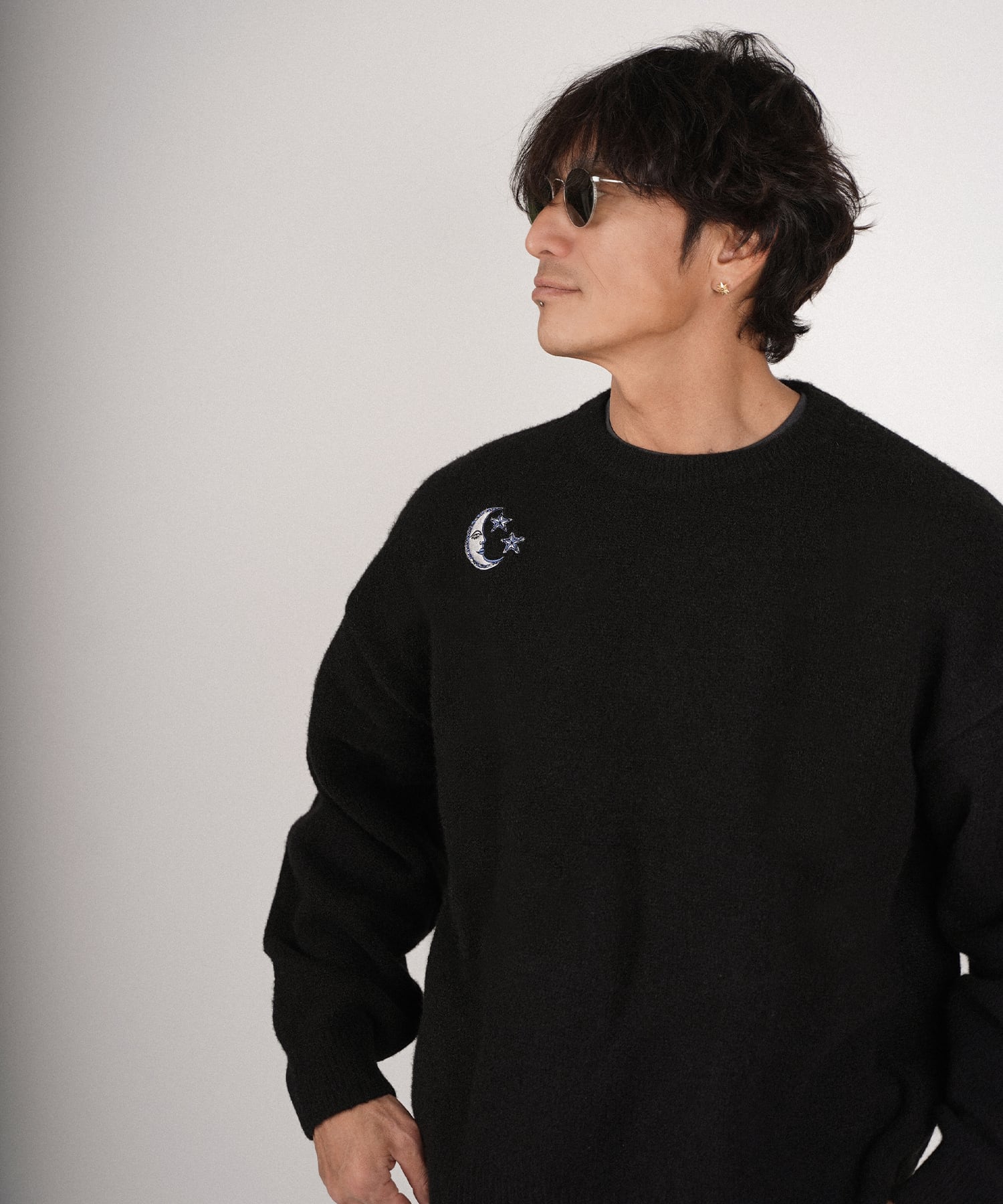 ・フロント部分には太陽、月と星をそれぞれモチーフにした刺繍を施したクルーニット。
