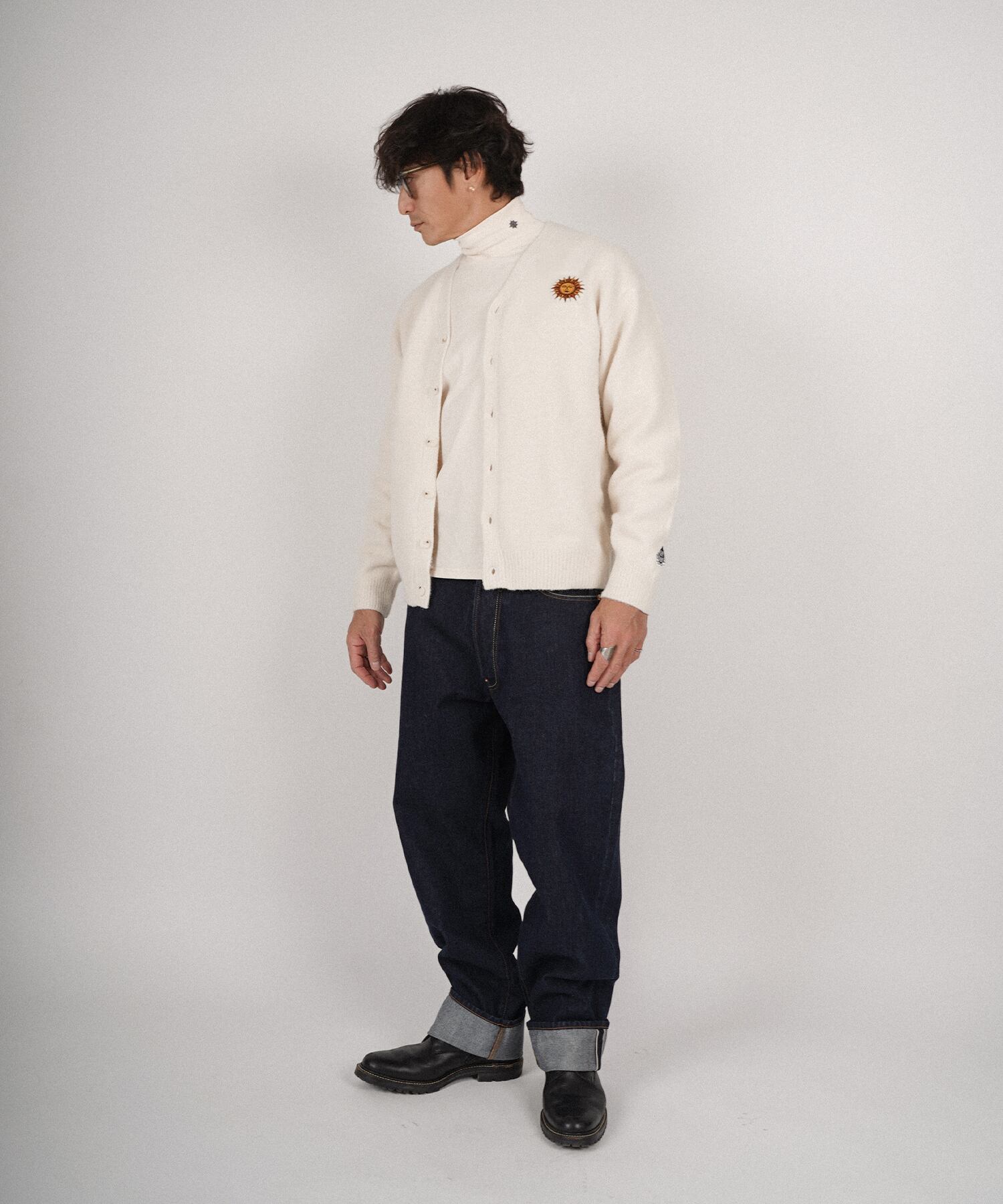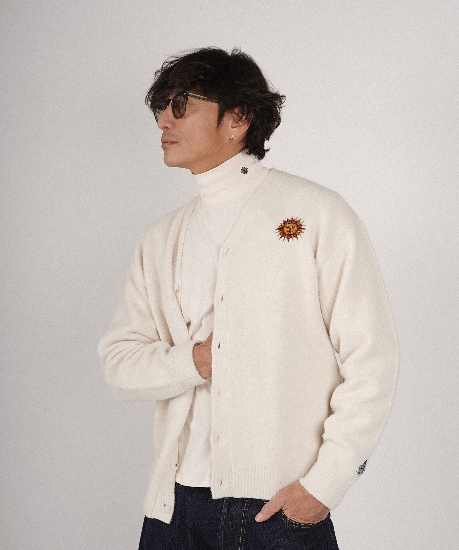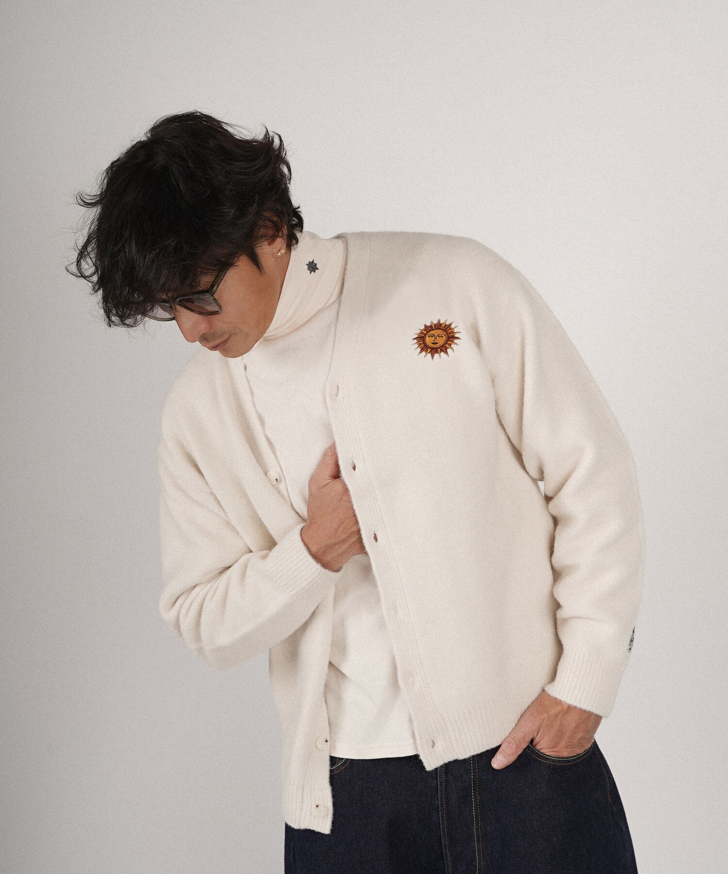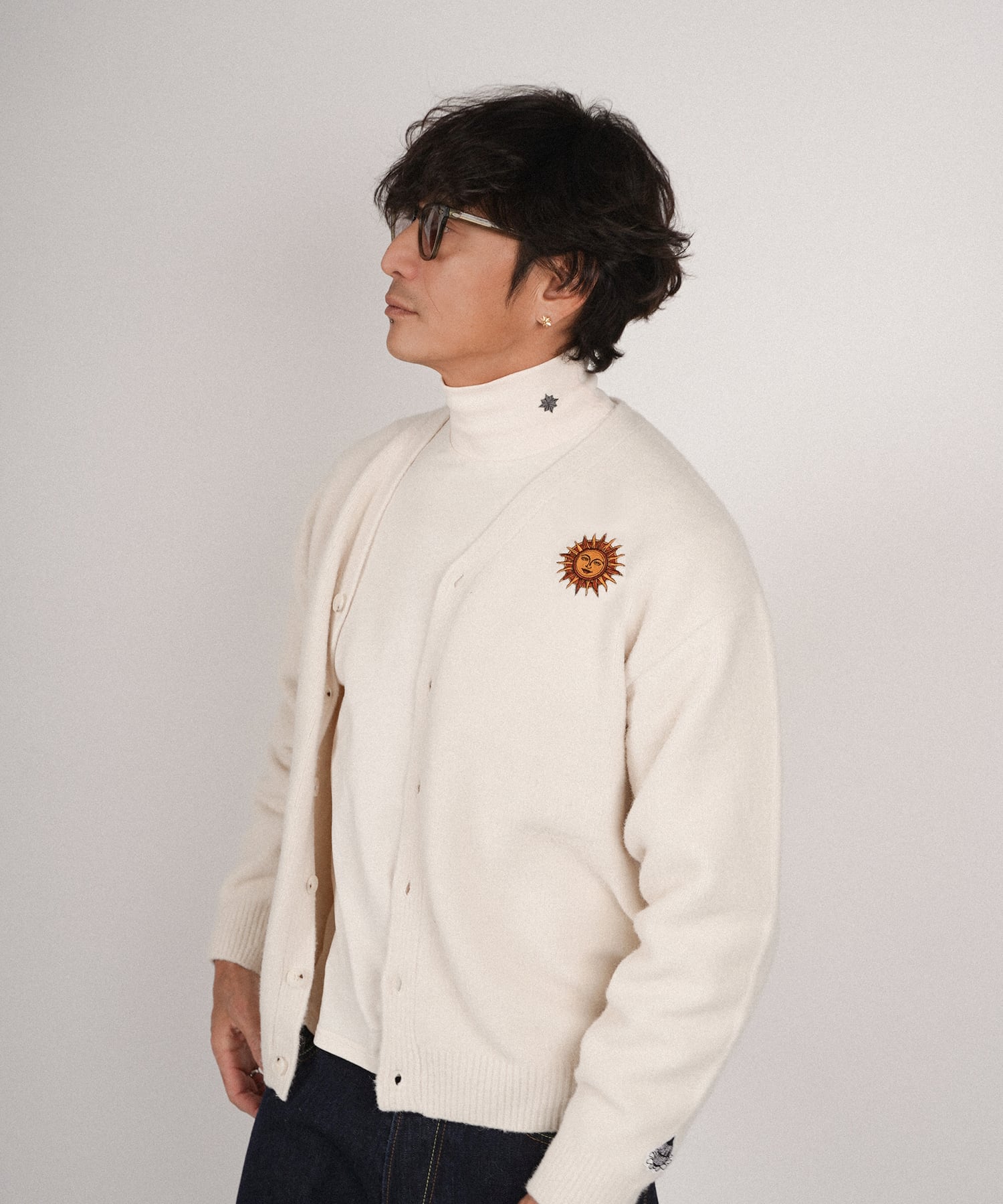 ・フロント部分には太陽、月と星をそれぞれモチーフにした刺繍を施したカーディガン。