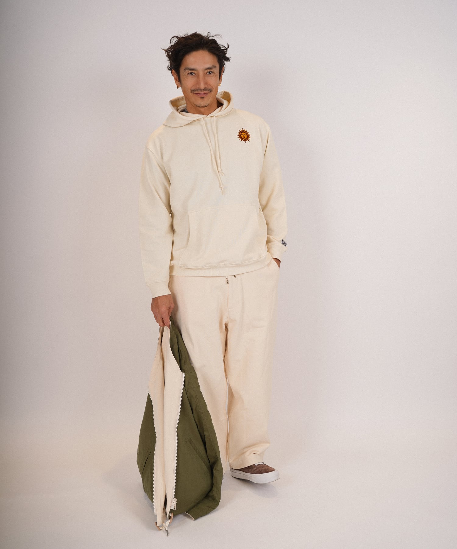・フロントには太陽をモチーフにした刺繍を施したパーカー