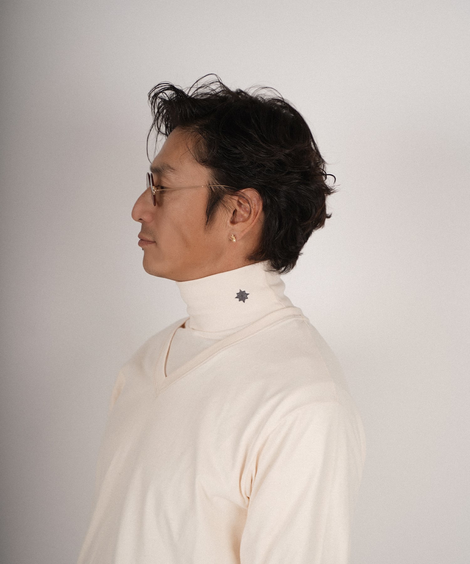 ・ハイネックの首元にはピアスモチーフでおなじみの刺繍をデザイン