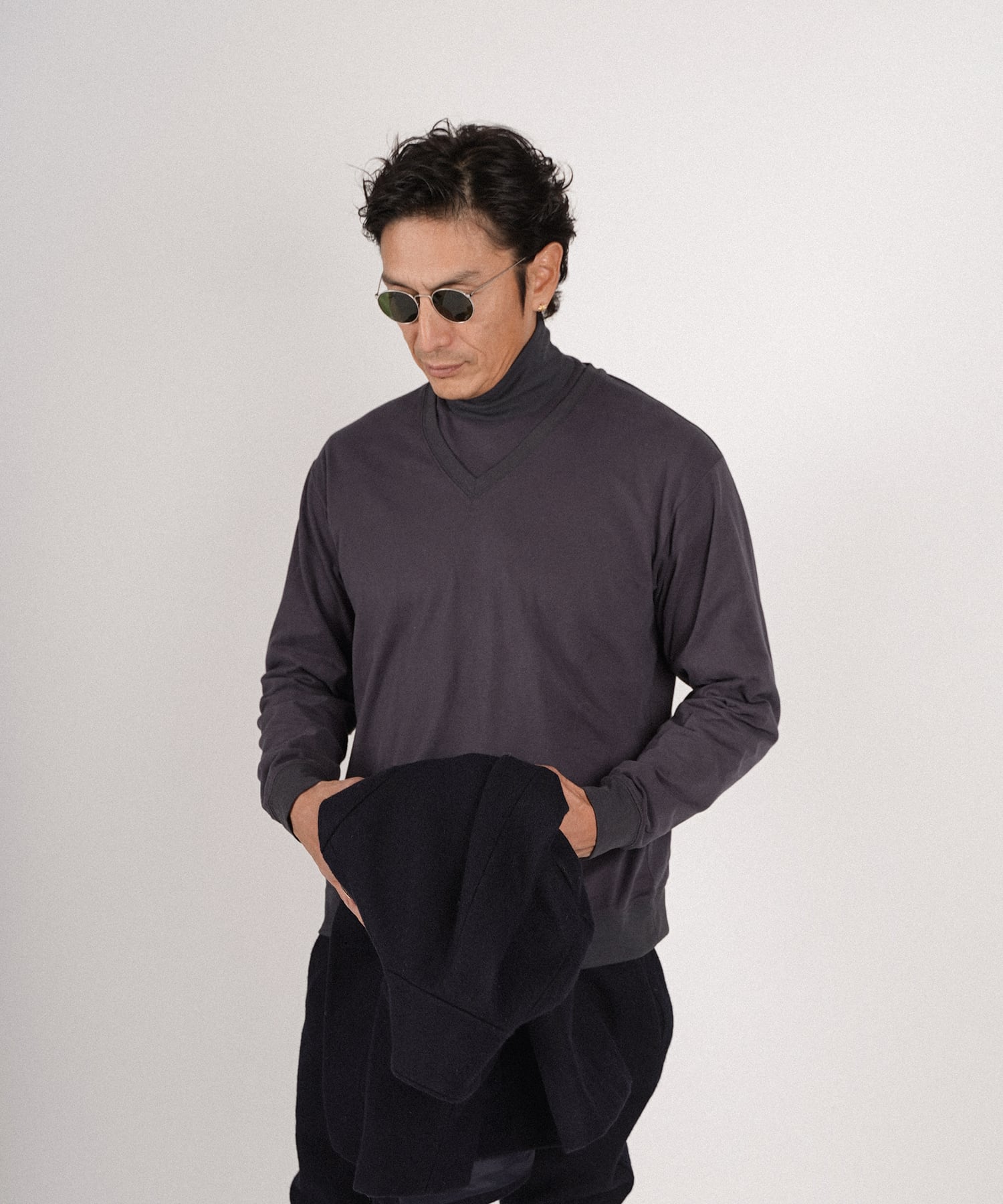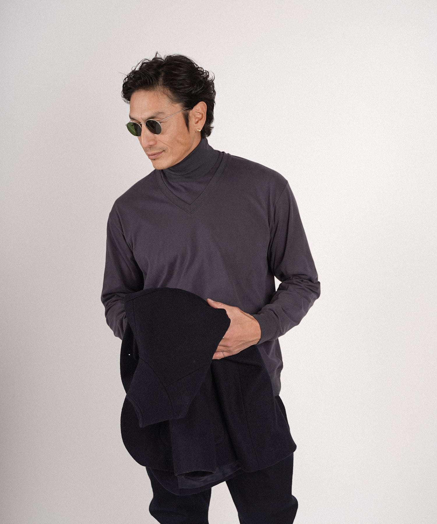 ・Vネックとハイネックの2型がセットになったロングスリーブ